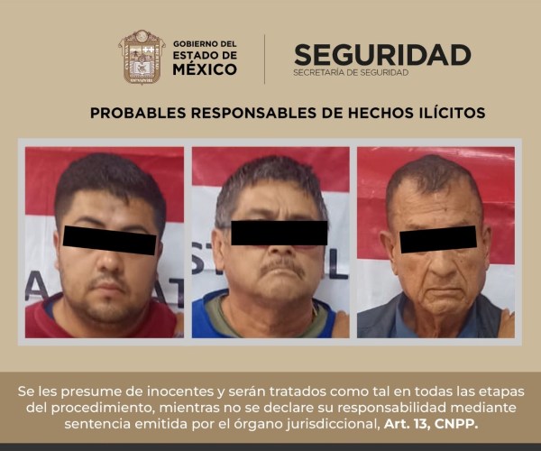Derivado de trabajos de investigación, elementos de la Secretaría de Seguridad del Estado de México y de la Policía Municipal detuvieron a tres hombres, dos de ellos de nacionalidad peruana; probables implicados en los delitos de cohecho, robo a cuentahabiente y contra la salud.