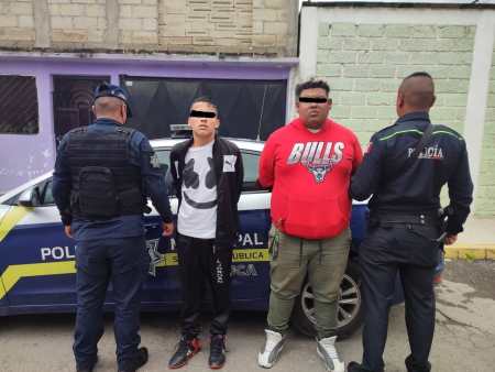 Elementos de la Dirección General de Seguridad y Protección de Toluca realizaron la detención de dos sujetos por su probable responsabilidad en robo a transeúnte en la Delegación San Buenaventura.