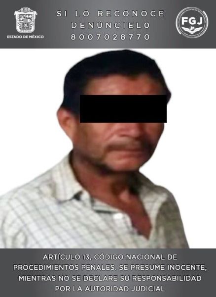 Estos hechos ocurrieron hasta el 23 de mayo de 2018, ya que en esa fecha este individuo fue detenido por el hecho delictivo de violación en agravio de su hija, por lo que fue ingresado al Centro Penitenciario y de Reinserción Social de Ixtlahuaca, en donde actualmente compurga una condena de 28 años y 6 meses de prisión.